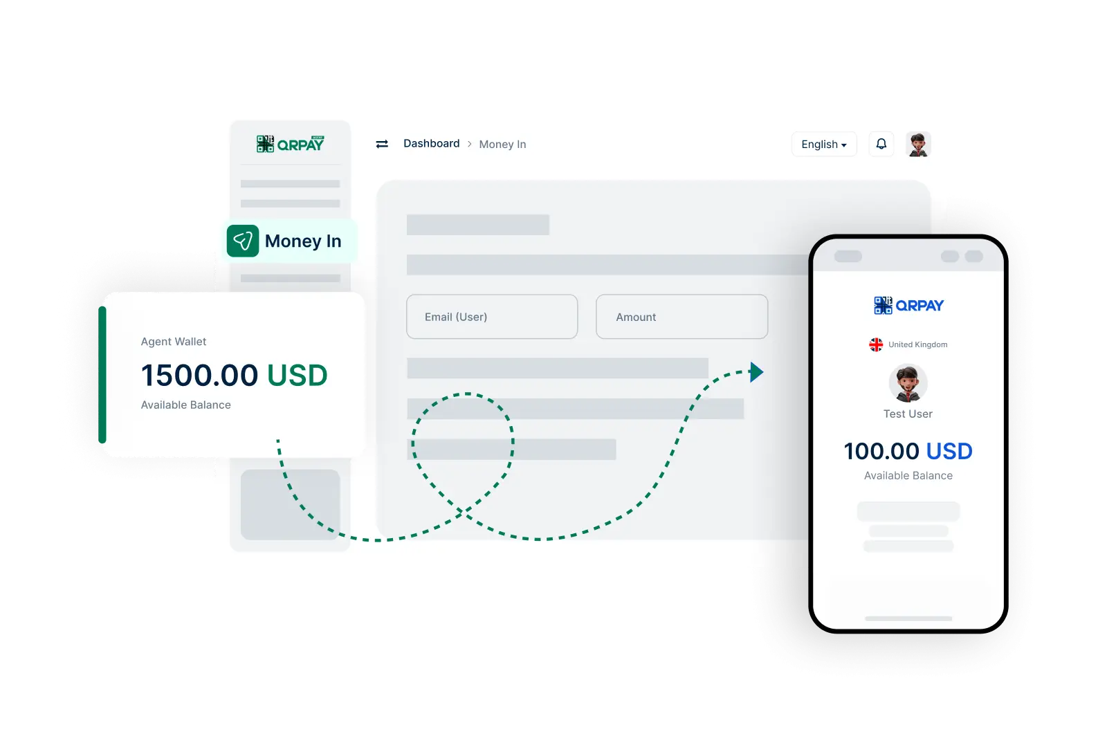 To send money, log in to your account, go to the ‘Money In’ section, select the user by entering their QRPay Pro ID, email, or phone number, specify the amount, review the details, and confirm the transfer.